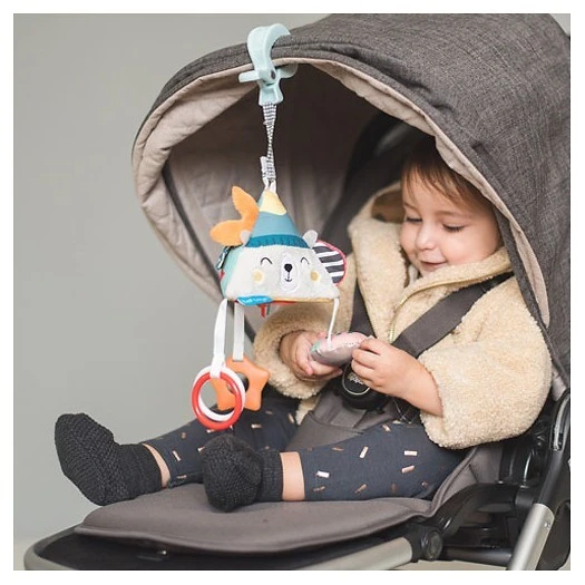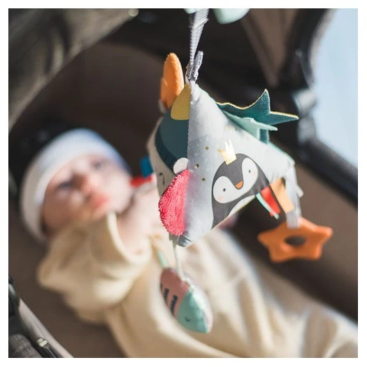 Závěsná hračka Taf Toys s motivem severního pólu má praktický klip, díky kterému jí zavěsíte kamkoliv budete potřebovat.Obsahuje spoustu prvků ke zkoumání - různé textury, chrastítko, kousátko, zrcátko, plastové kroužky.