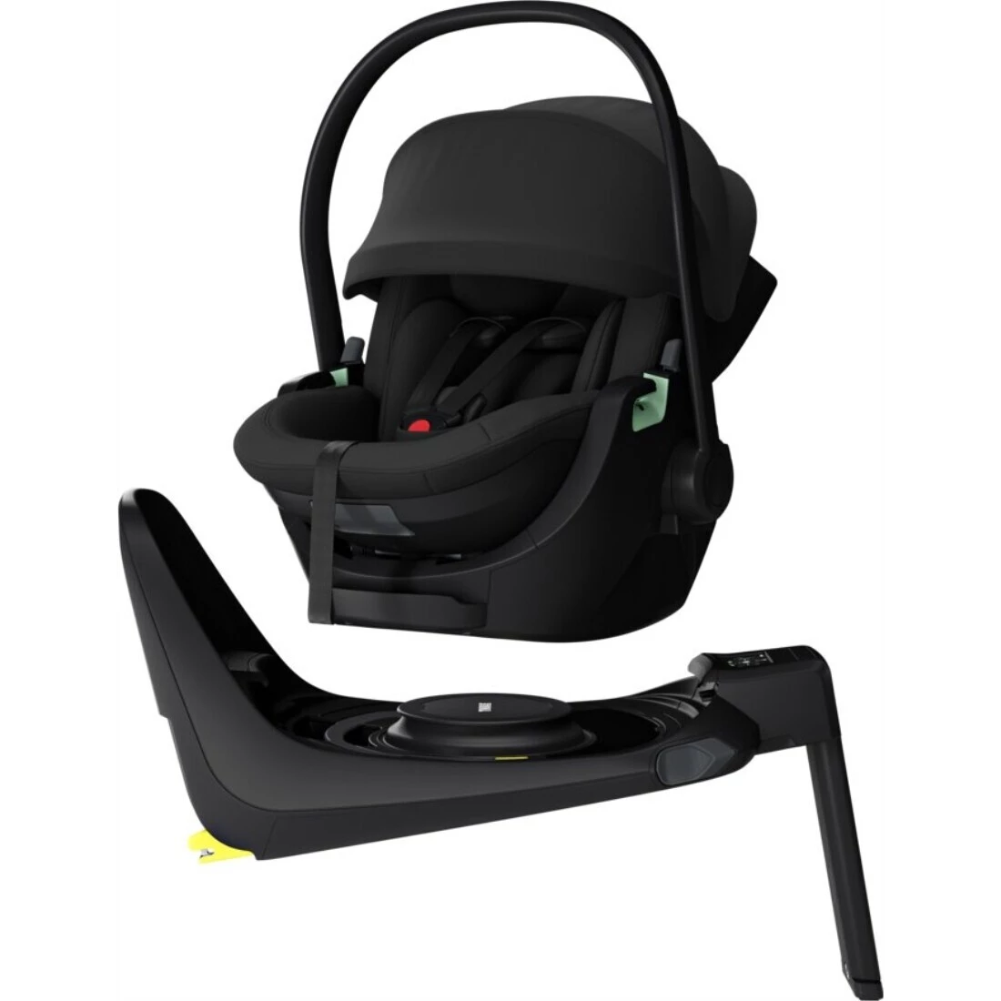 Autosedačka disponuje také praktickými uvolňovacími tlačítky na rukojeti pro přenášení. ty vám umožní rychlé vyjmutí autosedačky ze základny. Kromě 3 bodových bezpečnostních pásů je autosedačka vybavena také novorozeneckou odnímatelnou vložkou, která je vhodná do 60 cm.