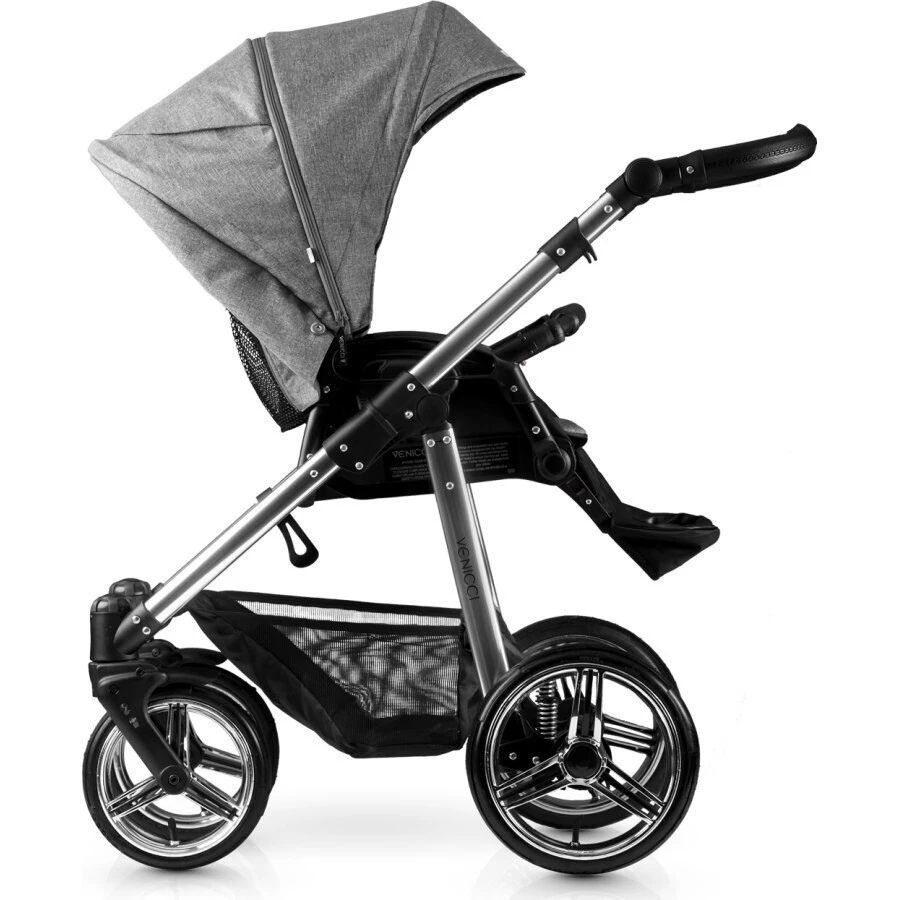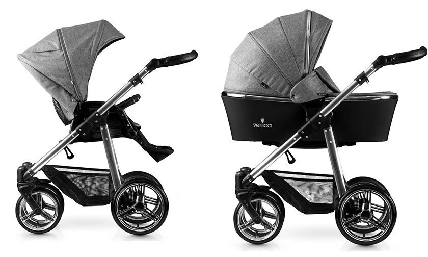 Dětský kočárek Venicci Silver je elegantní řešení vhodné pro děti od narození do cca 36 měsíců. Nosnost kočárku je 15 kg.V ceně kočárku je podvozek, hluboká novorozenecká korbička, sportovní korbička a bohaté příslušenství. Kromě základních komponent tak získáte také nánožník, tašku na rukojeť, pláštěnku, moskytiéru, držák nápojů a návleky na kola.