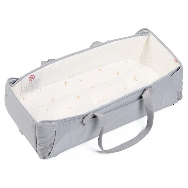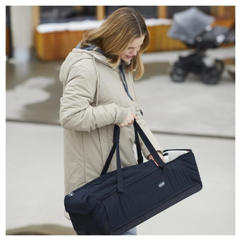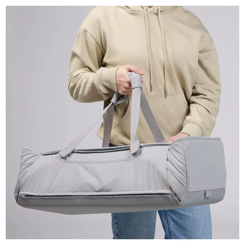 Inovativní funkce: Díky systému Soft Release™ je zajištěno bezpečné přenášení – ucha tašky se uvolní pouze tehdy, jsou-li rohy zcela uzamčeny. Tento mechanismus je tichý, takže neruší spící dítě. Při odemknutí rohů se taška rozloží do plochého tvaru, což umožňuje její využití jako hrací podložky.