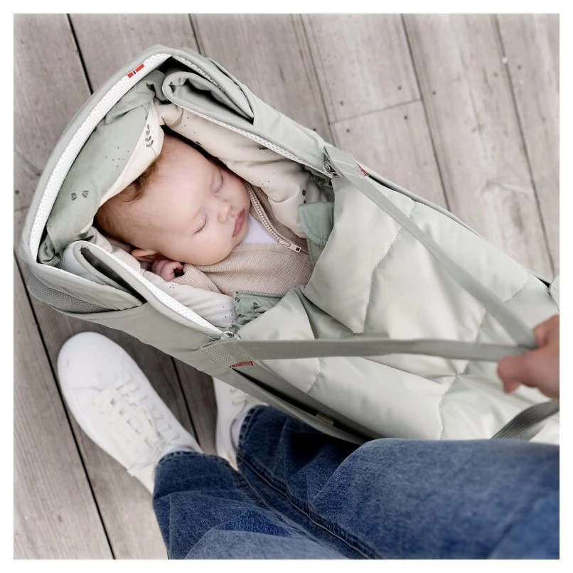 Certifikace a materiály: Všechny použité materiály jsou certifikovány podle OEKO-TEX® Standard 100, třída 1, což zaručuje, že neobsahují škodlivé chemikálie. Taška je vhodná pro děti od narození do 6 měsíců (maximálně 9 kg). Maximální vnější délka je přibližně 65 cm a šířka 25 cm. Oberstoff je vyroben ze 100% recyklovaného polyesteru, vnitřní materiál ze 100% organické bavlny a výplň ze 100% polyesteru.