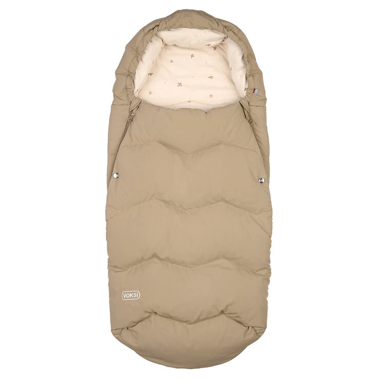 Vrchní část fusaku lze kompletně odepnout a je plněna kachním prachovým peřím. Spodní strana je plněna 100% přírodní vlnou. Vnitřní materiál fusaku je ze 100% organické bavlny, které je velmi příjemná na dotek.