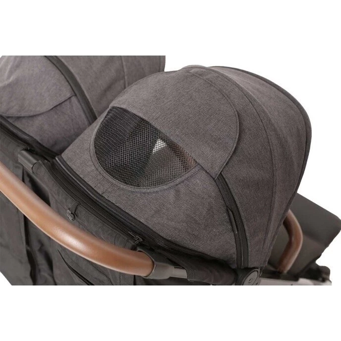 Kočárek X-Double se snadno řídí a velmi lehce zatáčí. Zadní část je možné odepnout a získat ventilační síťku, která v létě v kočárku vytvoří opravdu příjemné klima. Velké XL boudičky chrání před sluncem i větrem. Boudičky mají sluneční kšilt i ventilační okénko.