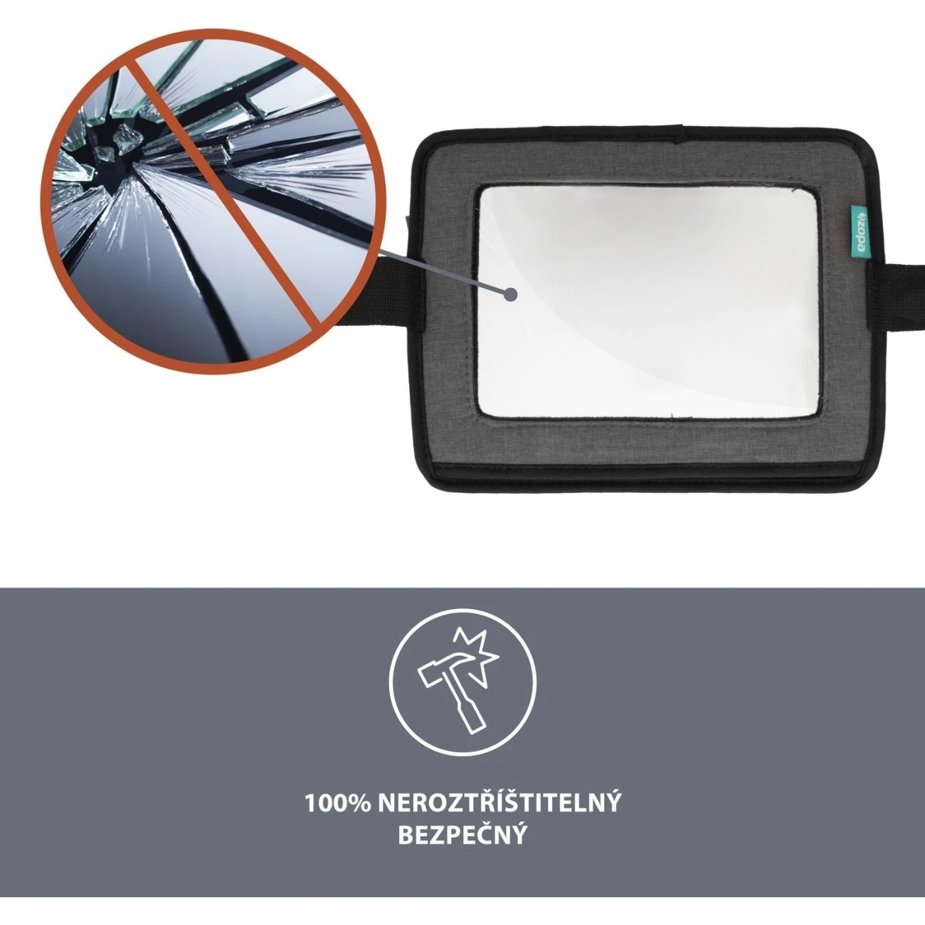 Zrcátko je vyrobené z velmi bezpečného nerozbitného materiálu. Připevní se velmi snadno na hlavovou opěrku.