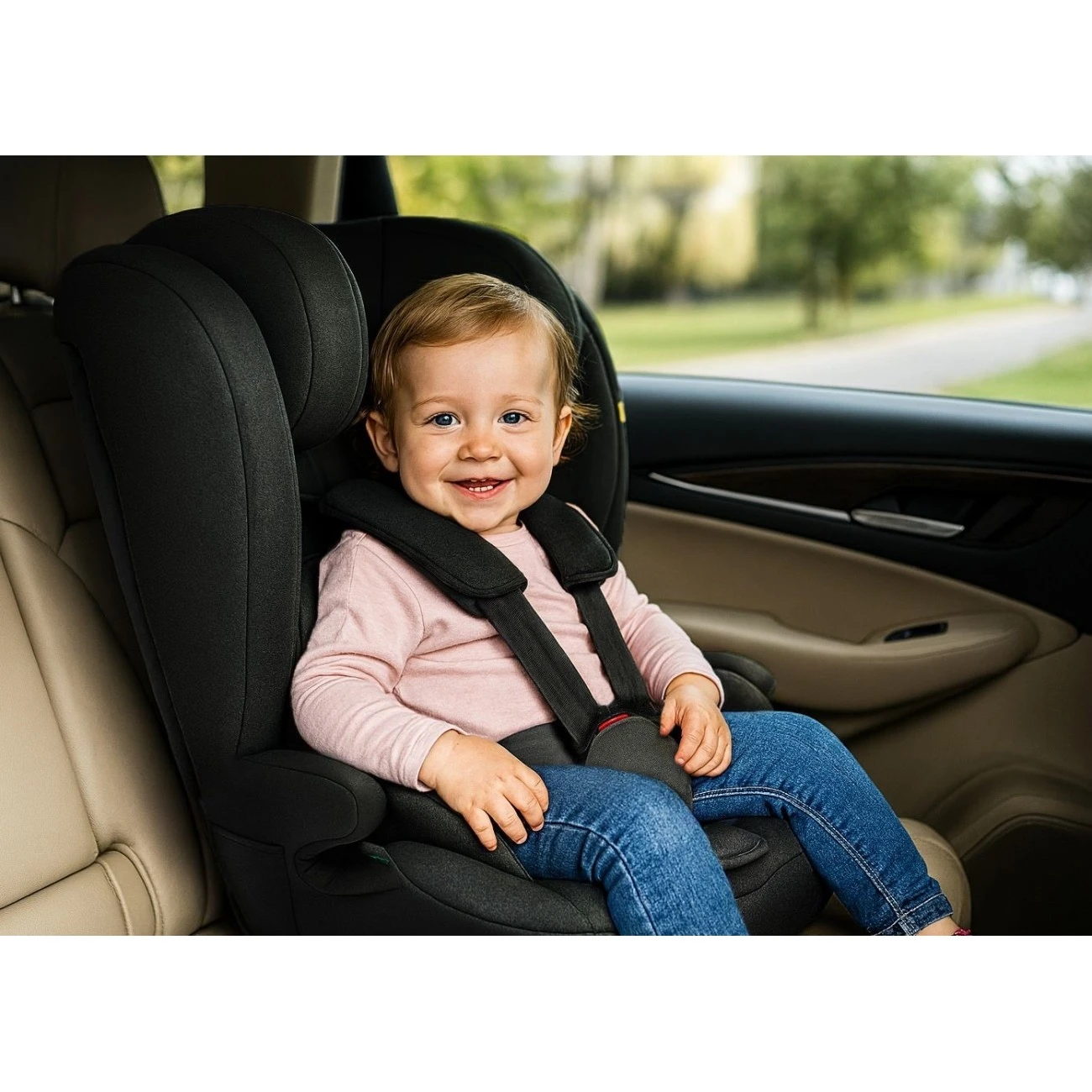 Výše bezpečnosti potvrzuje i fakt, že autosedačka splňuje nejpřísnější bezpečnostní normu ECE R129 (i-Size). Menší děti do 105 cm využívají 5 bodový pás autosedačky. Starší jsou pak pásání autopásem.