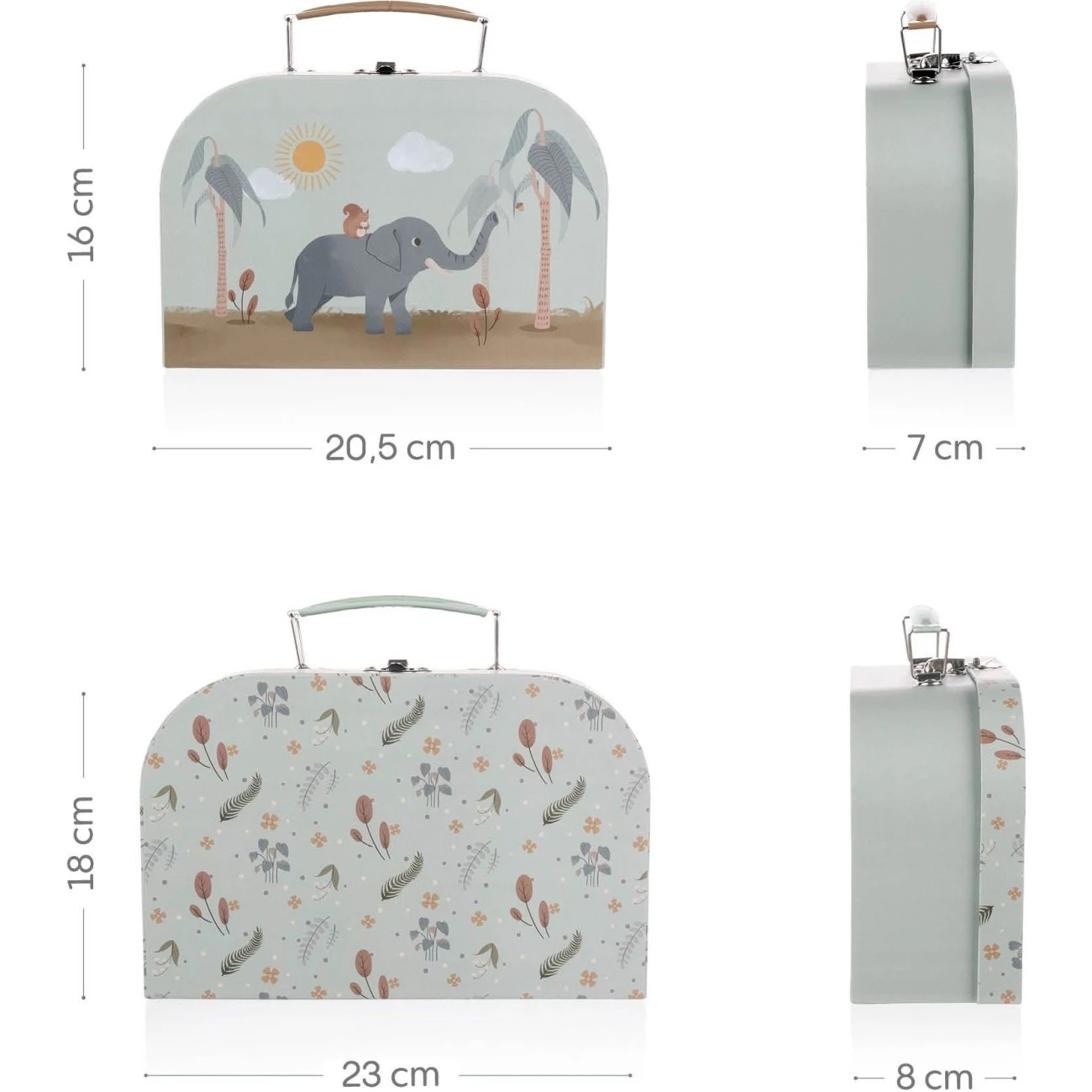 Sada 2 dětských kufříků je vhodná jak pro výtvarné potřeby, tak i pro uschování spoustu dětských pokladů. Kufříky mají krásný dětský motiv, se kterým mohou děti poznávat barvy, tvary a zvířátka.Děti se učí s kufříky držet svůj pořádek ve věcech a pečovat o ně.