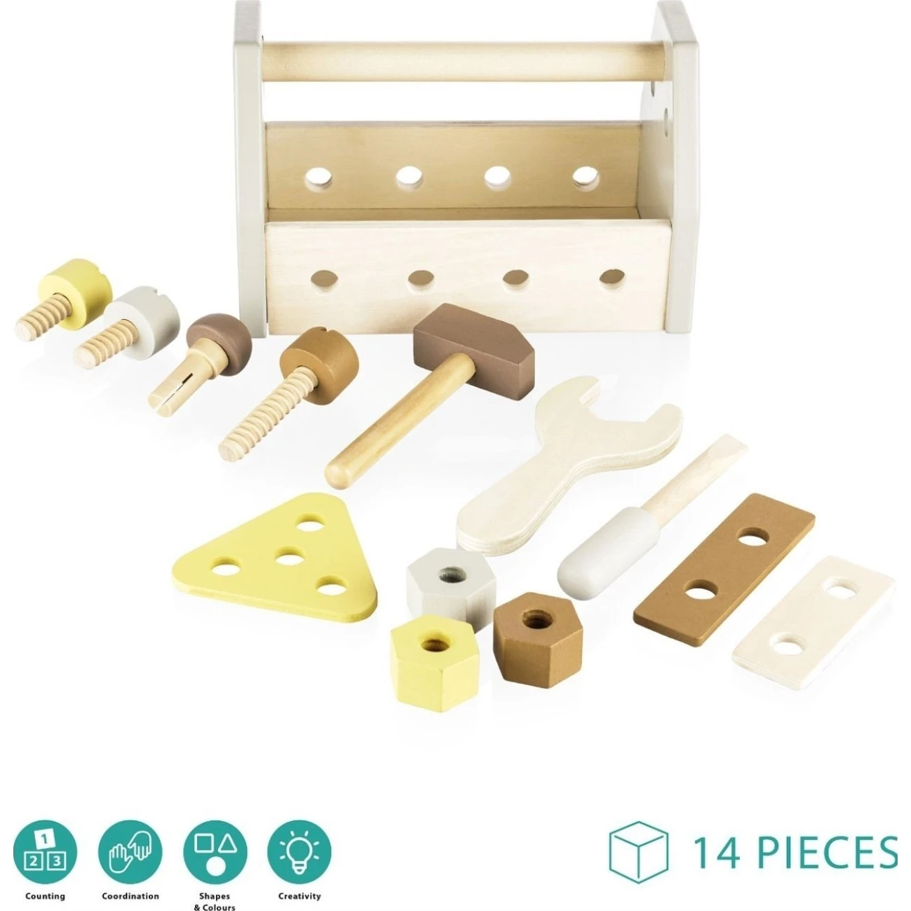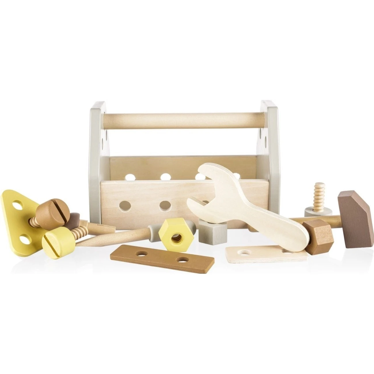 Tato hračka nadchne každého malého kutila. Zopa dřevěná sada nářadí v boxu je 14 dílnou sadou, která je vyrobena z kvalitního dřeva s netoxickými barvami.Obsash sady: