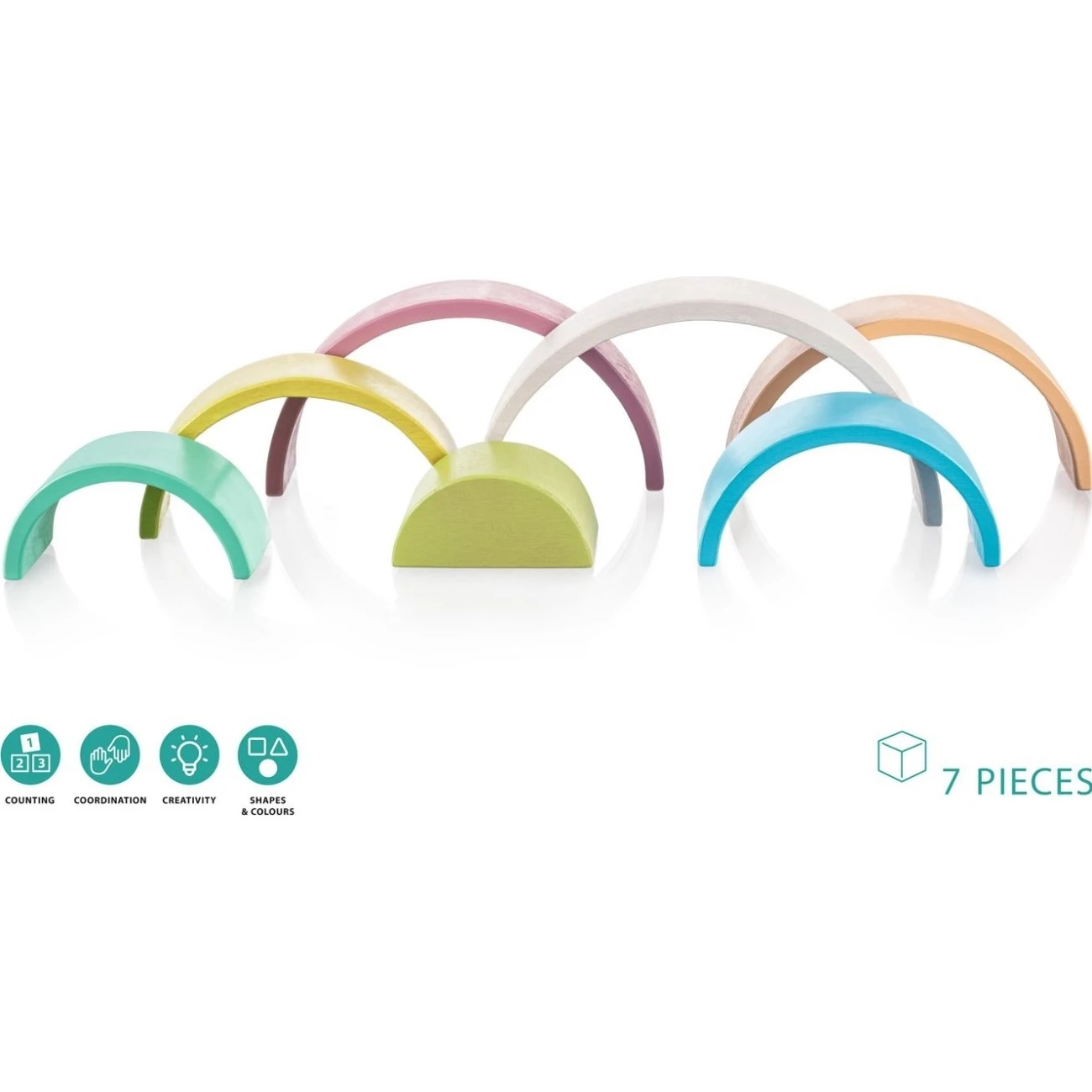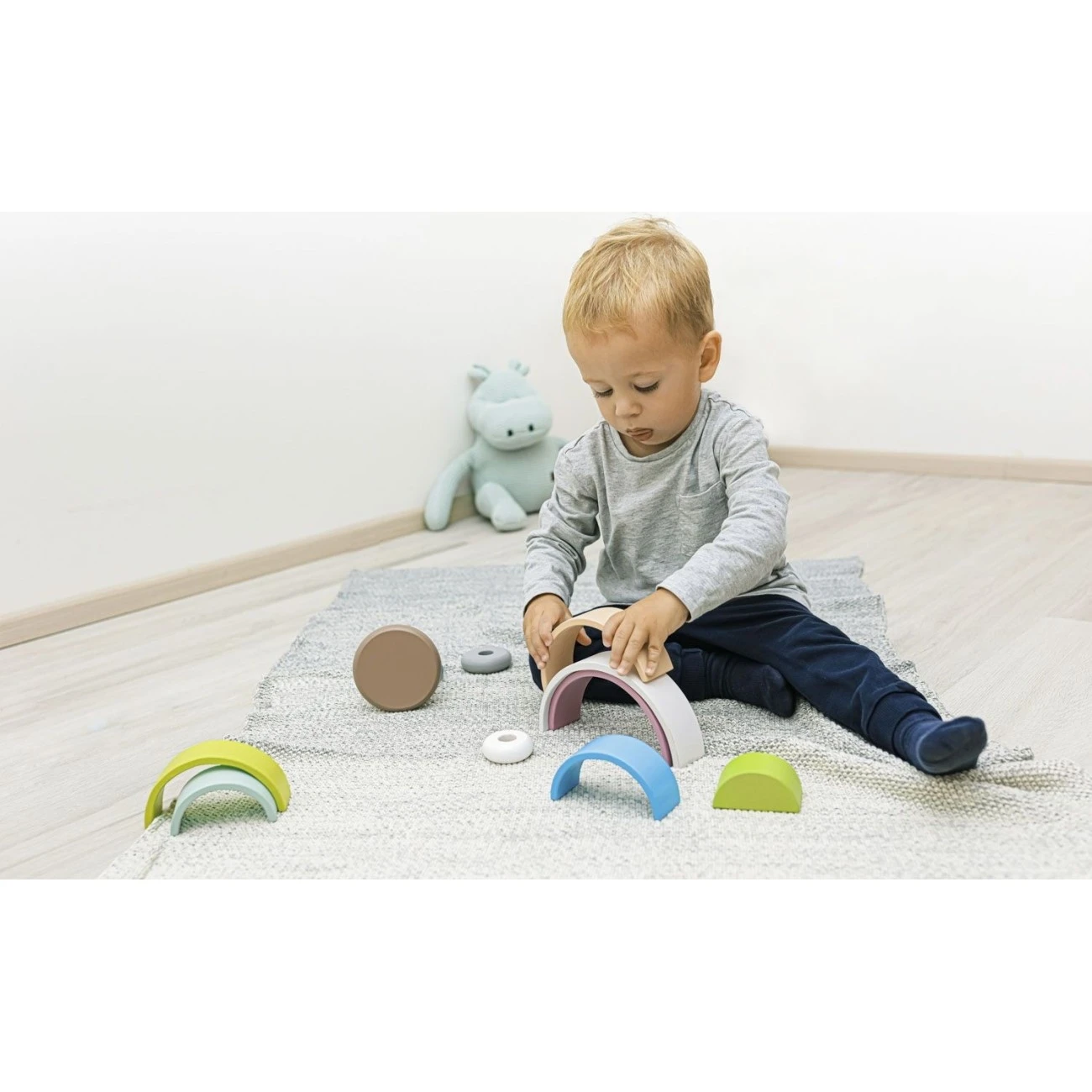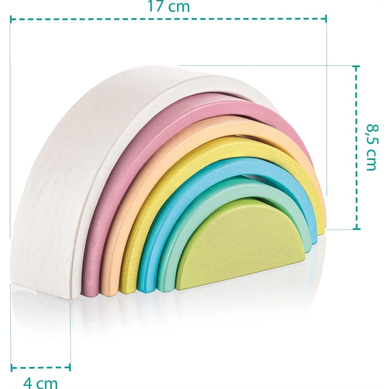 Děti se nejlépe učí hrou. Zopa dřevěná skládací duha je pro to skvělou pomůckou, která je vhodná od 18 měsíců. Duha podporuje představivost i kreativitu a je skvělá pro trénink barviček, ale také rozvoj jemné motoriky.Ze skládačky se dají vytvořit nejrůznější tvary. Vytvořte tunely, domečky pro zvířátka nebo mosty pro auta. Vše je jen na vaší fantazii.