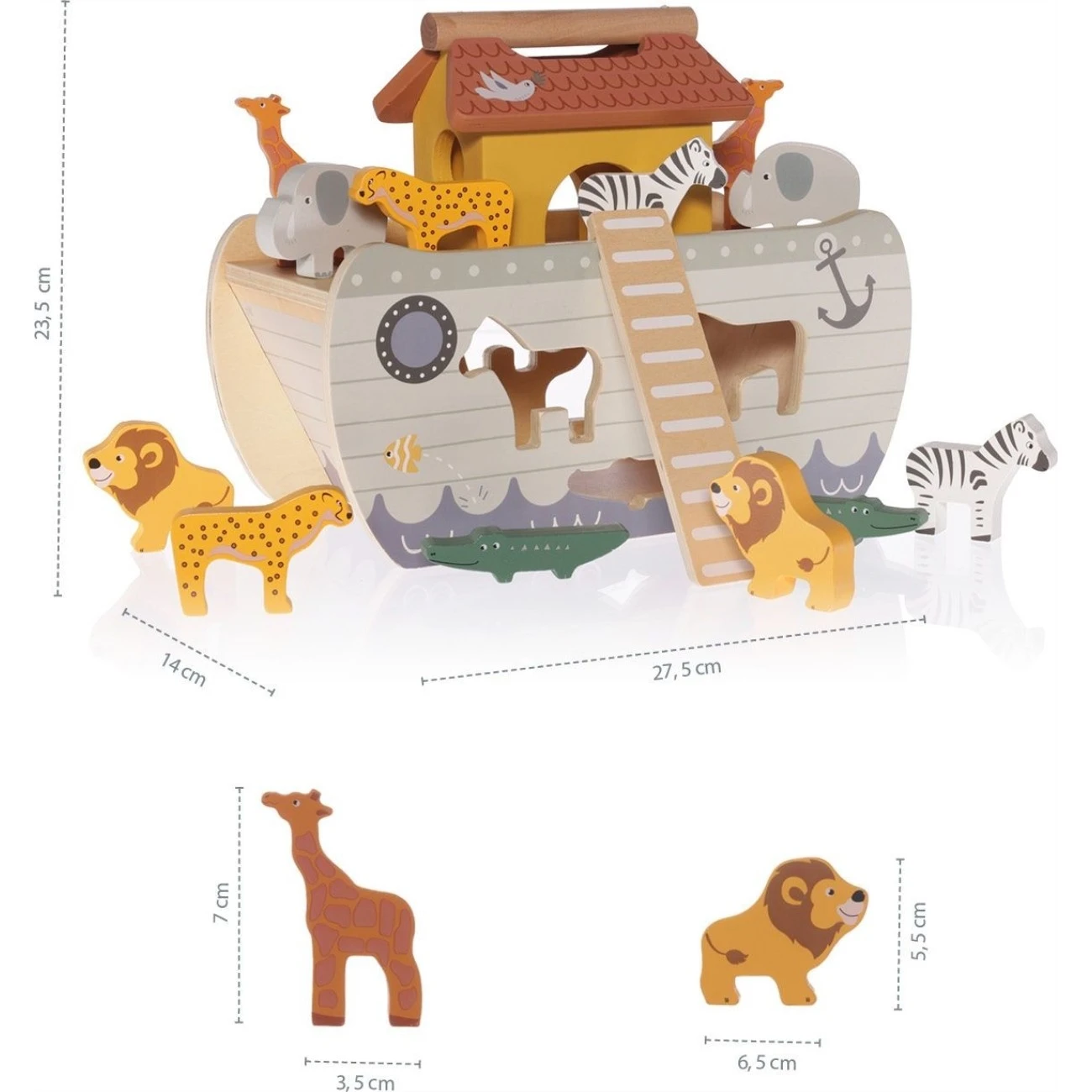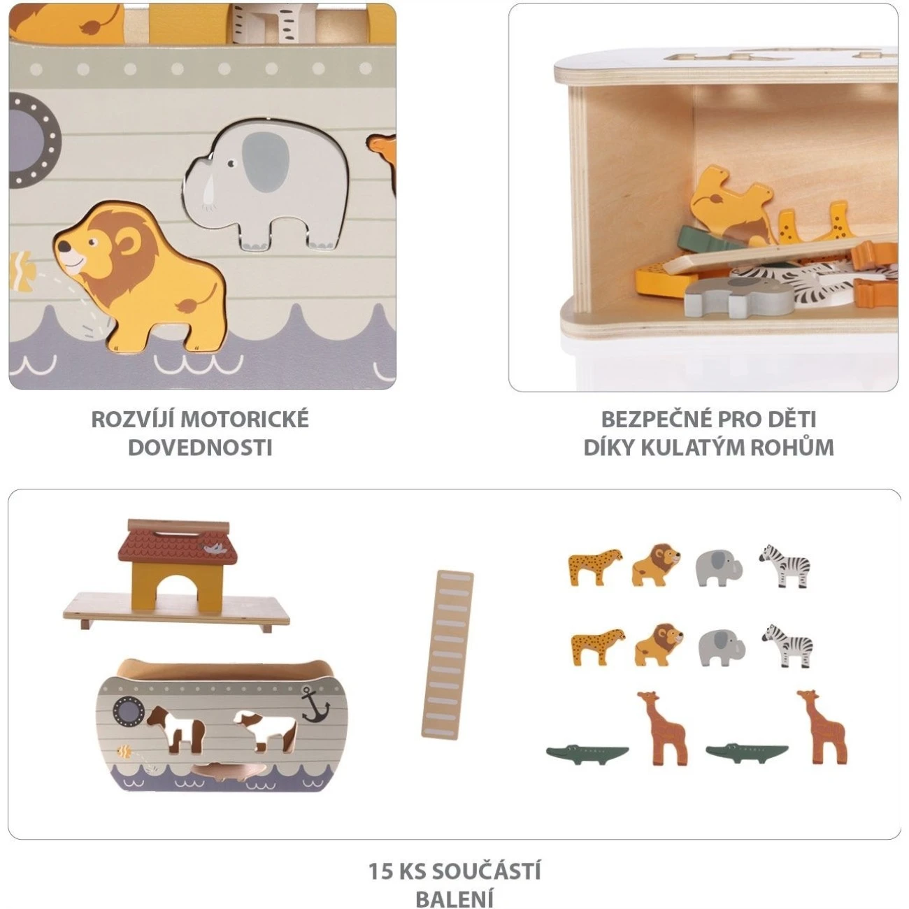 Zachrání vaše dítko všechna zvířátka a nalodí je na Noemovo archu? Dřevěná vkládačka Zopa rozvíjí koordinaci ruka-oko, logické myšlení, představivost i rozpoznávání zvířátek.Je vhodná cca od 18 měsíců, vyrobena z kvalitního odolného dřeva a netoxických barev.