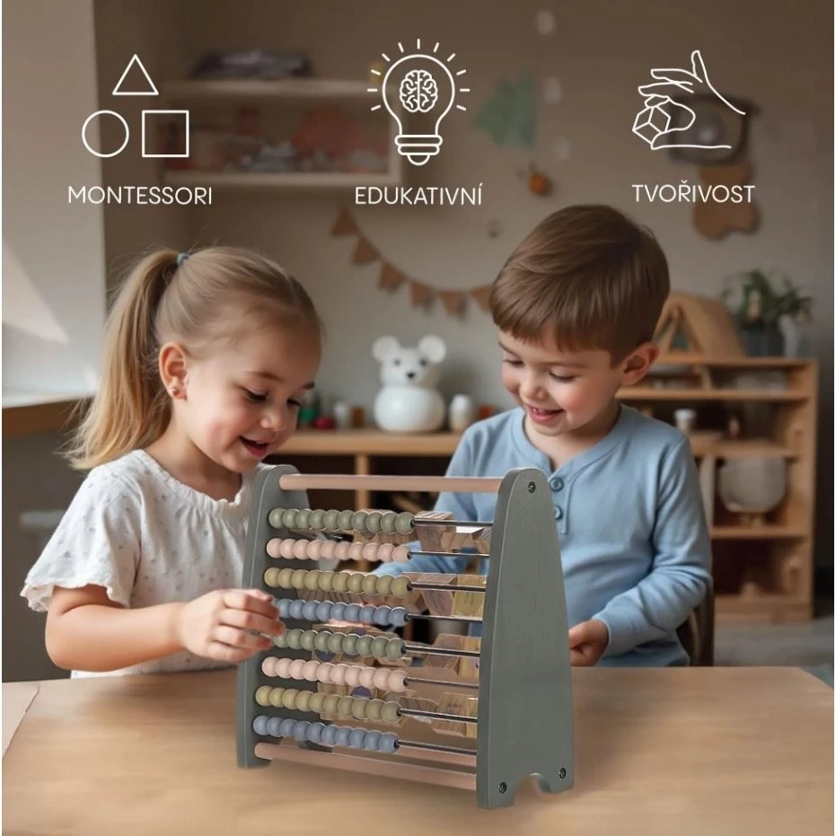 Skvělá pomůcka pro učení hrou! Zopa dřevěné oboustranné počítadlo můžete využí pro děti již od 12 měsíců, ale poslouží vám po dlouhou dobu a s písmenky a počítáním může napomoci i mnohem starším dětem.Dřevěné počítadlo má z jedné strany klasické dřevěné kuličky a z druhé strany otočné kostičky s písmenky, zvířátky a tvary. Tato edukační pomůcka podporuje i rozvoj jemné motoriky, logického myšlení a slovní zásoby.