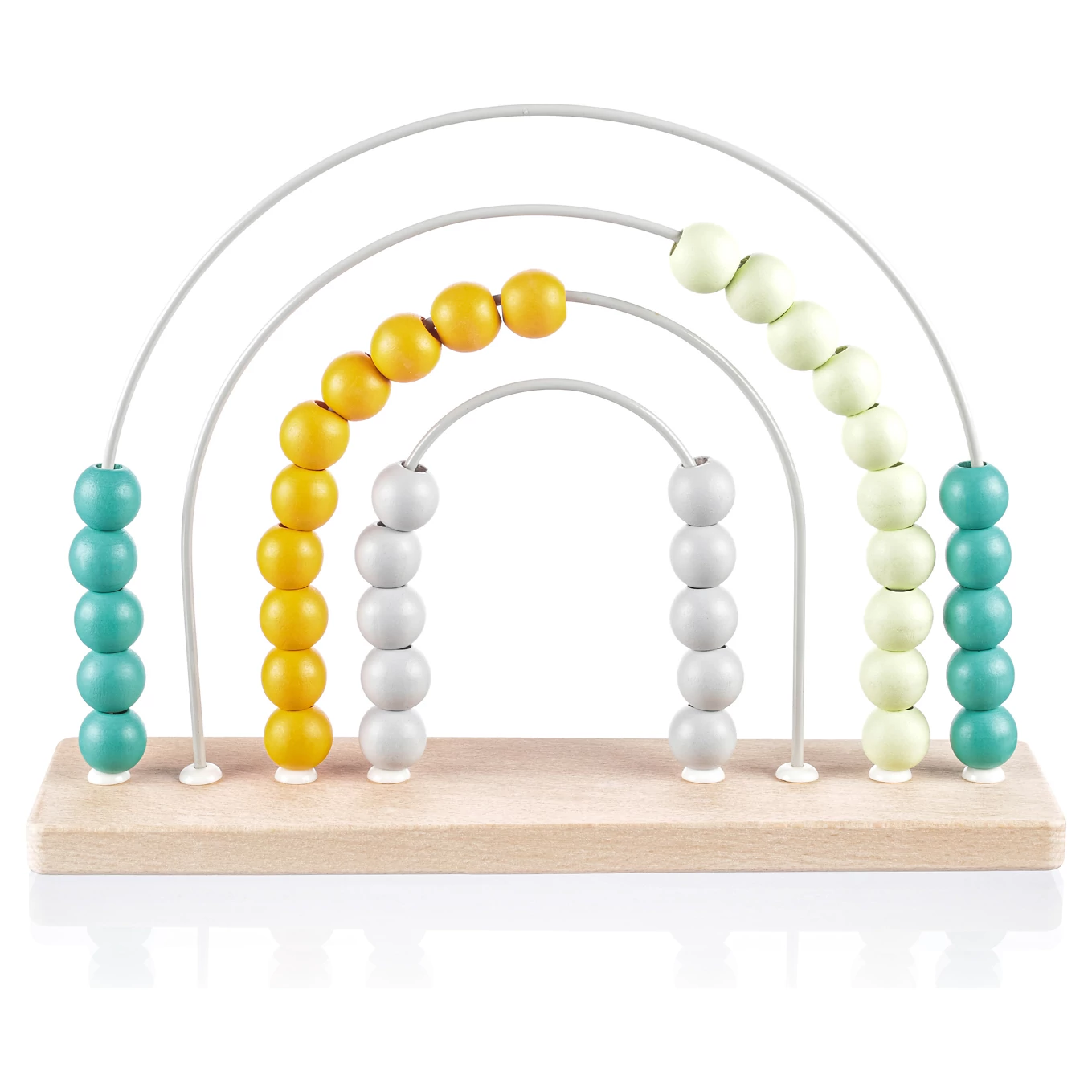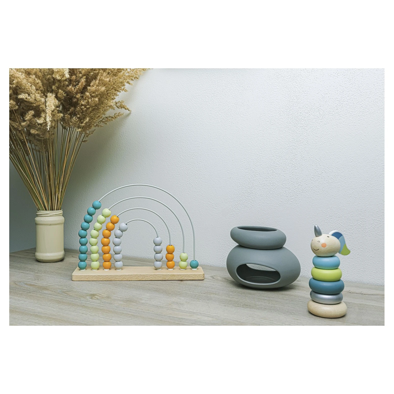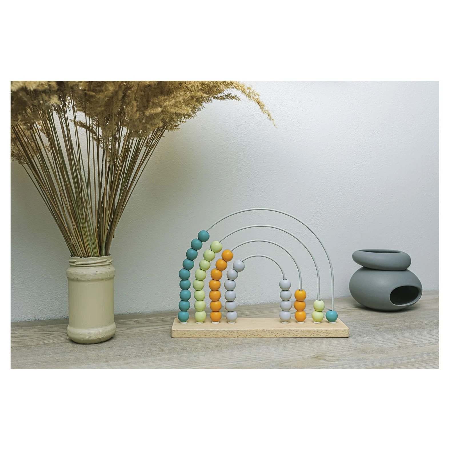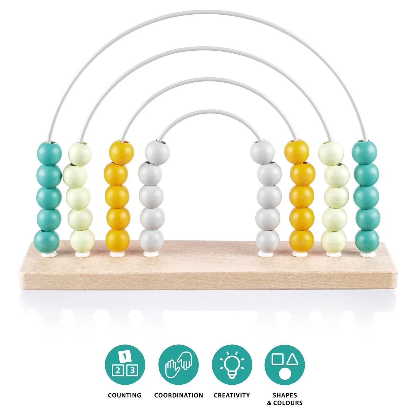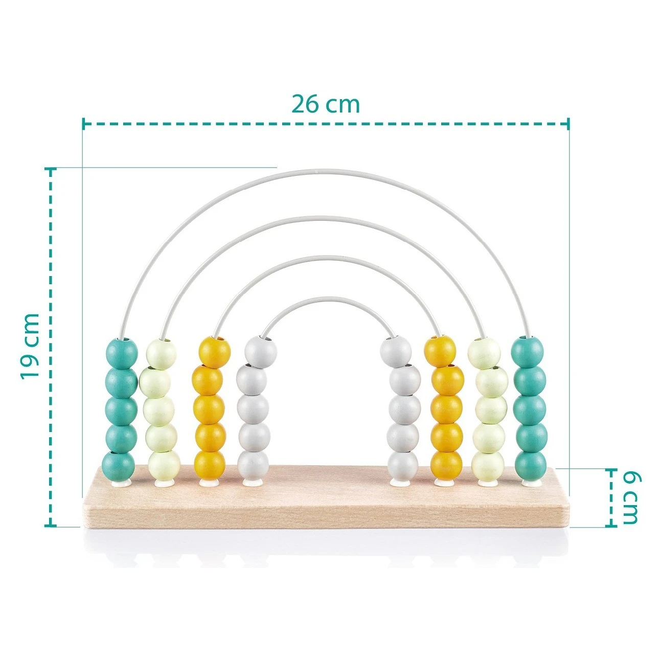 Dřevěné oboustranné počítadlo ZOPA je ideální vzdělávací hračka pro děti od 12 měsíců, která kombinuje zábavu s učením. Na jedné straně nabízí klasické počítadlo s barevnými korálky, které pomáhá dětem osvojit si základy počítání a rozvíjet jemnou motoriku. Druhá strana je vybavena otočnými dřevěnými kostičkami s písmeny A–Z, zvířátky a jednoduchými tvary, což podporuje rozvoj slovní zásoby a poznávání tvarů.Pevná dřevěná konstrukce zajišťuje dlouhou životnost hračky, zatímco jemné pastelové barvy dodávají moderní a nadčasový vzhled, který se hodí do každého dětského pokoje. Díky kompaktním rozměrům 25 × 9,5 × 23 cm je počítadlo snadno přenosné a ideální i na cesty.