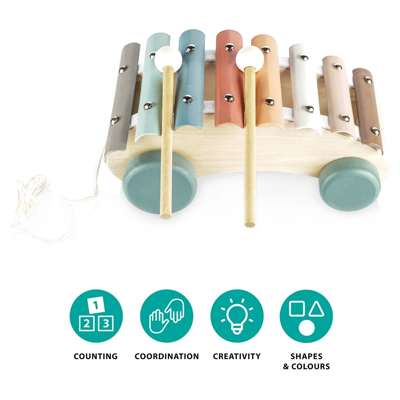 ZOPA Dřevěný tahací xylofon je ideální hračkou pro malé hudebníky, která kombinuje zábavu s rozvojem dětských dovedností. Tento kvalitní dřevěný xylofon umožňuje dětem objevovat hudební rytmy a tóny, čímž podporuje jejich sluchové vnímání a kreativitu.Hračka je vybavena kolečky a pevnou šňůrkou, což umožňuje dítěti tahat xylofon za sebou. Tato funkce nejenže usnadňuje přenášení hračky, ale také motivuje děti k chůzi a rozvíjí jejich motorické schopnosti.