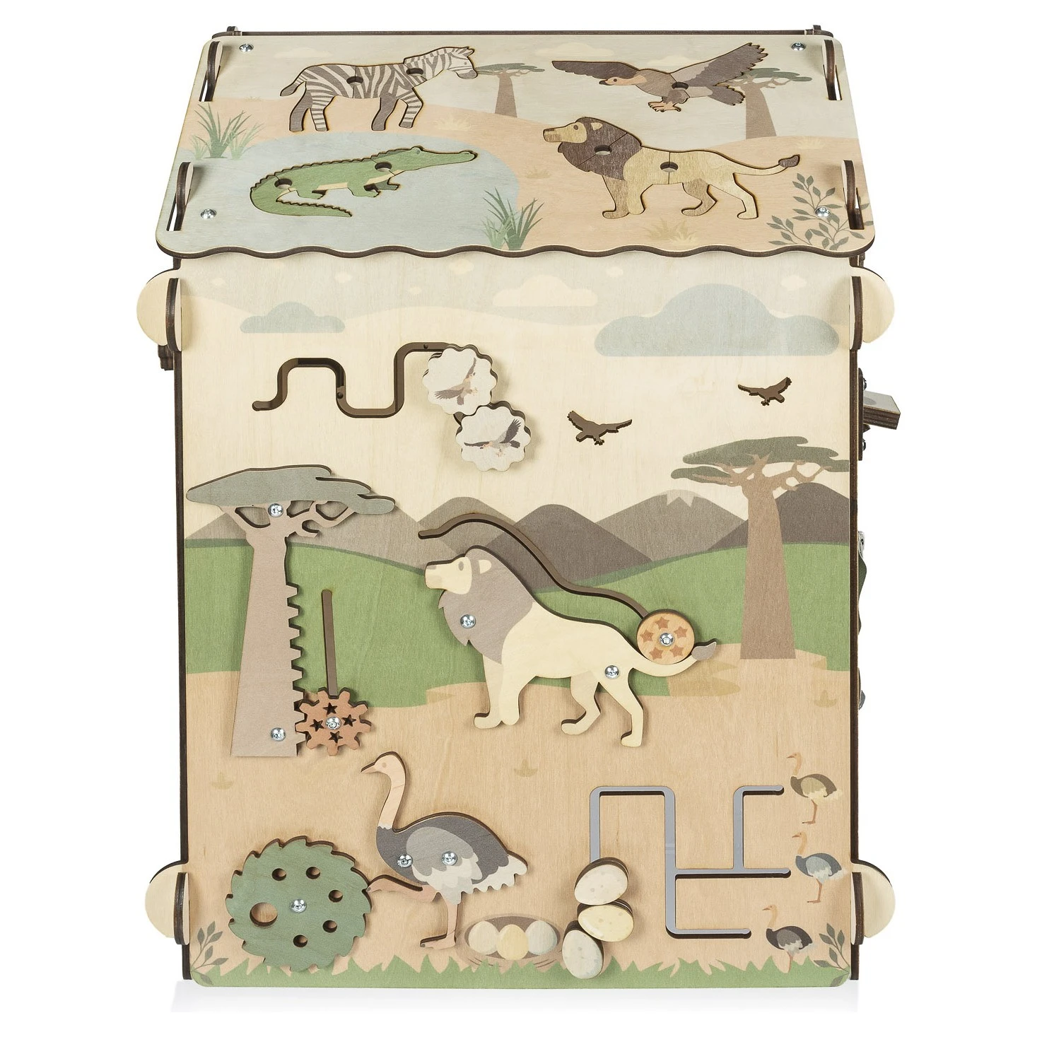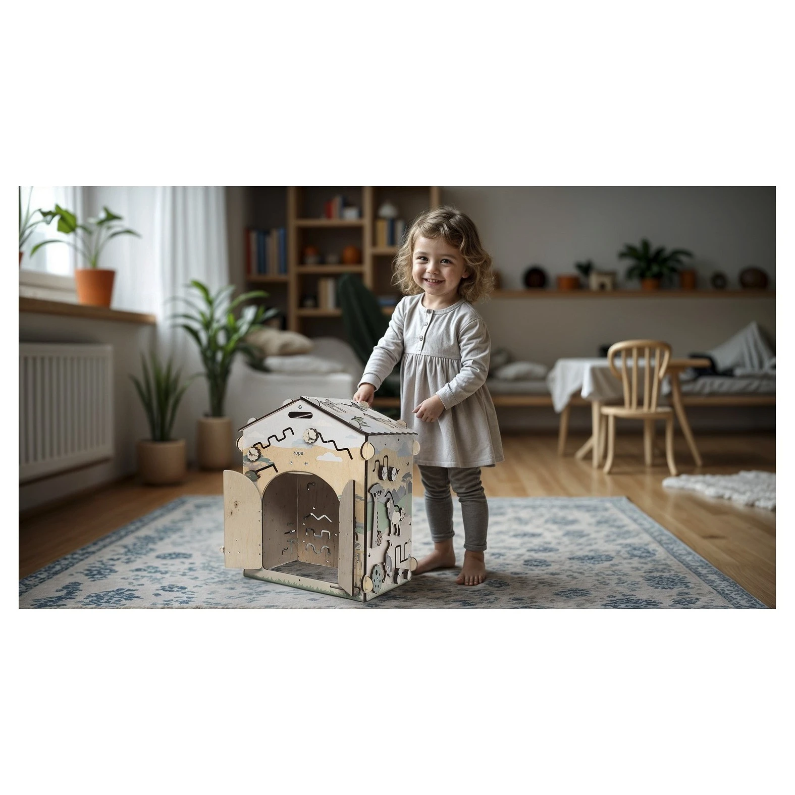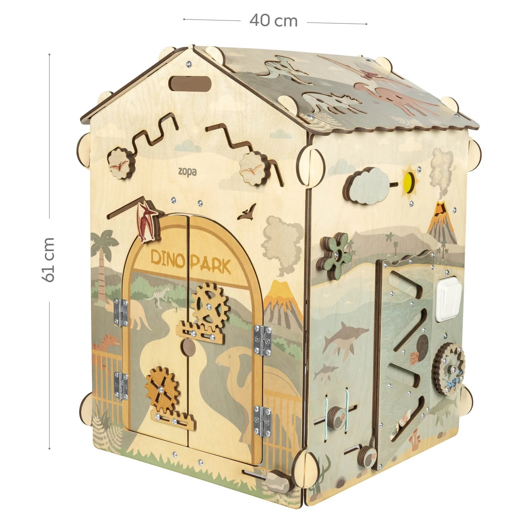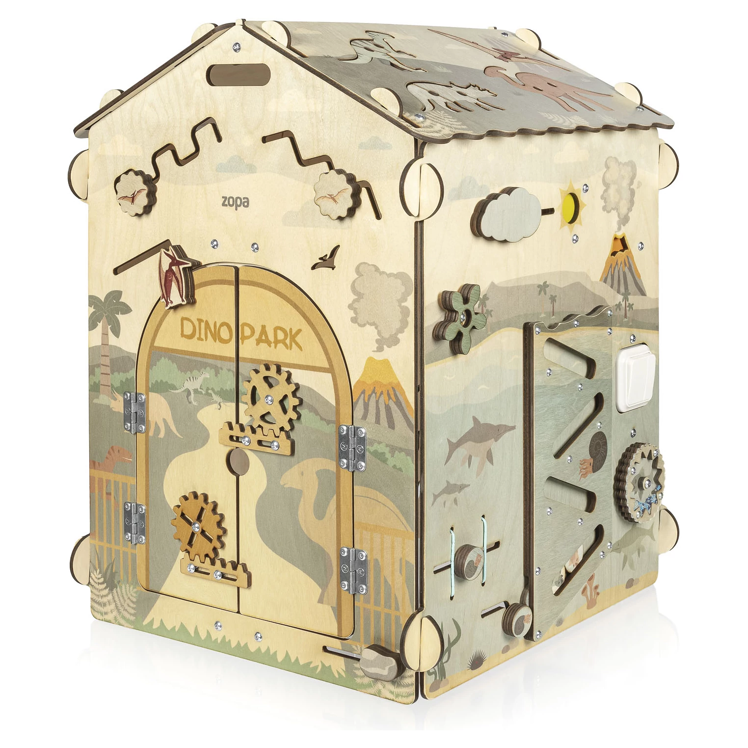 S tímto domečkem si děti užijí spousty zábavy.Každá strana domečku je kreativní: labyrinty, ozubená kolečka, otočné obrázky či kuličkové dráhy rozvíjející koordinaci a smysl pro detail.