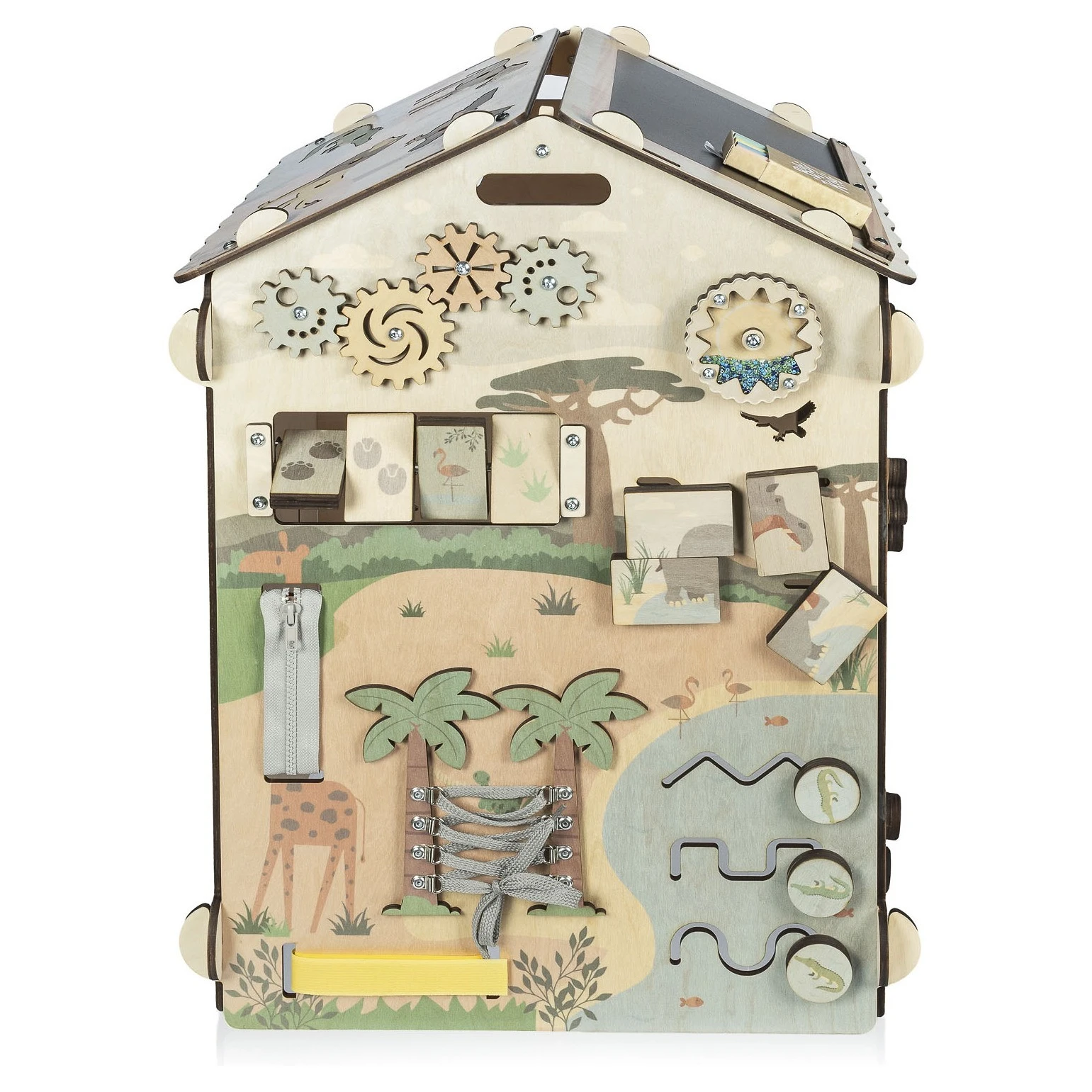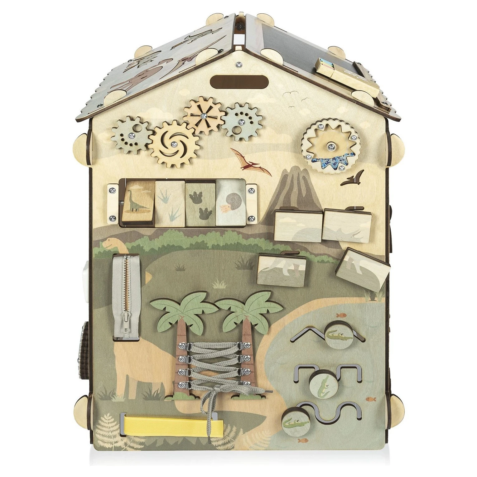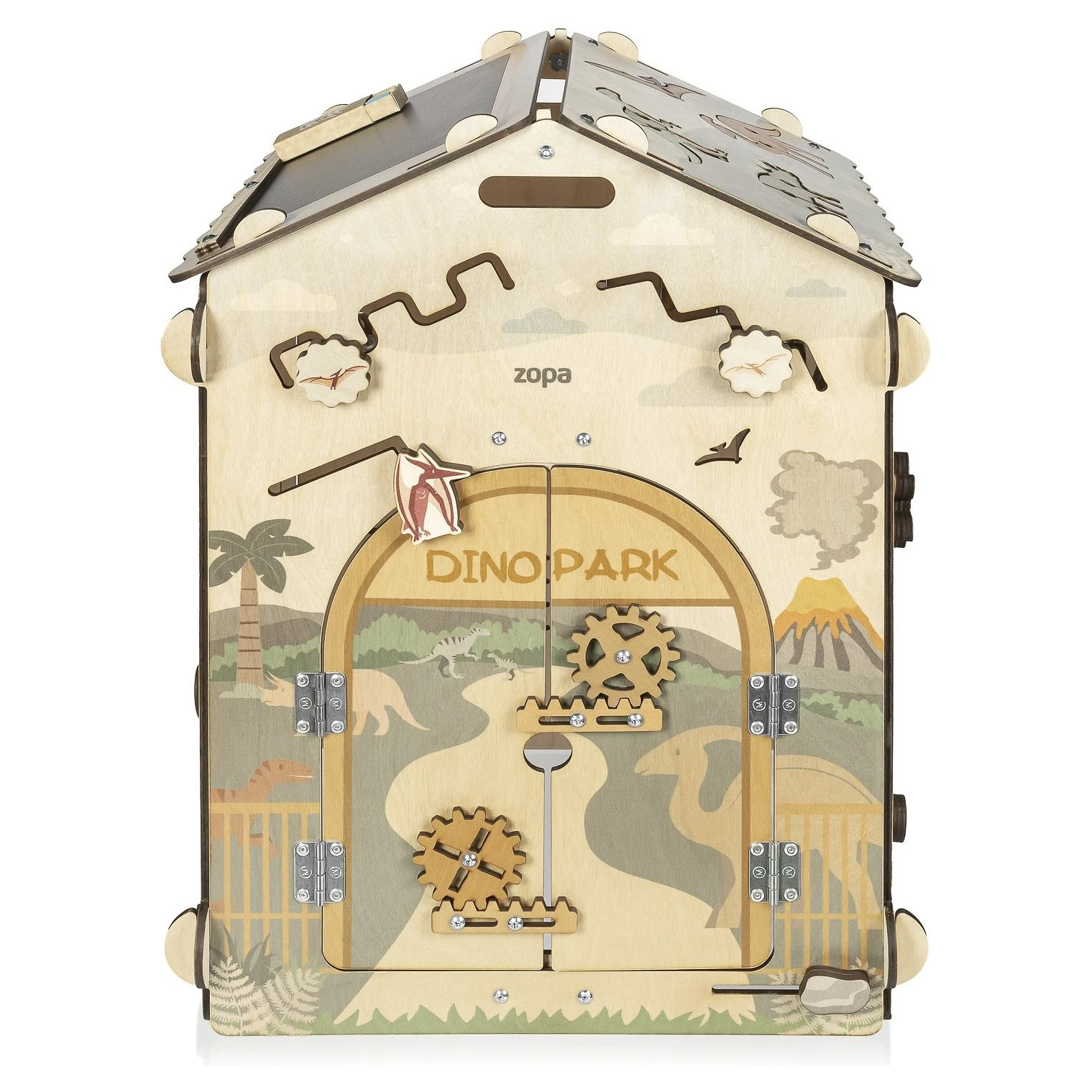 S tímto domečkem si děti užijí spousty zábavy.Každá strana domečku je kreativní: labyrinty, ozubená kolečka, otočné obrázky či kuličkové dráhy rozvíjející koordinaci a smysl pro detail.