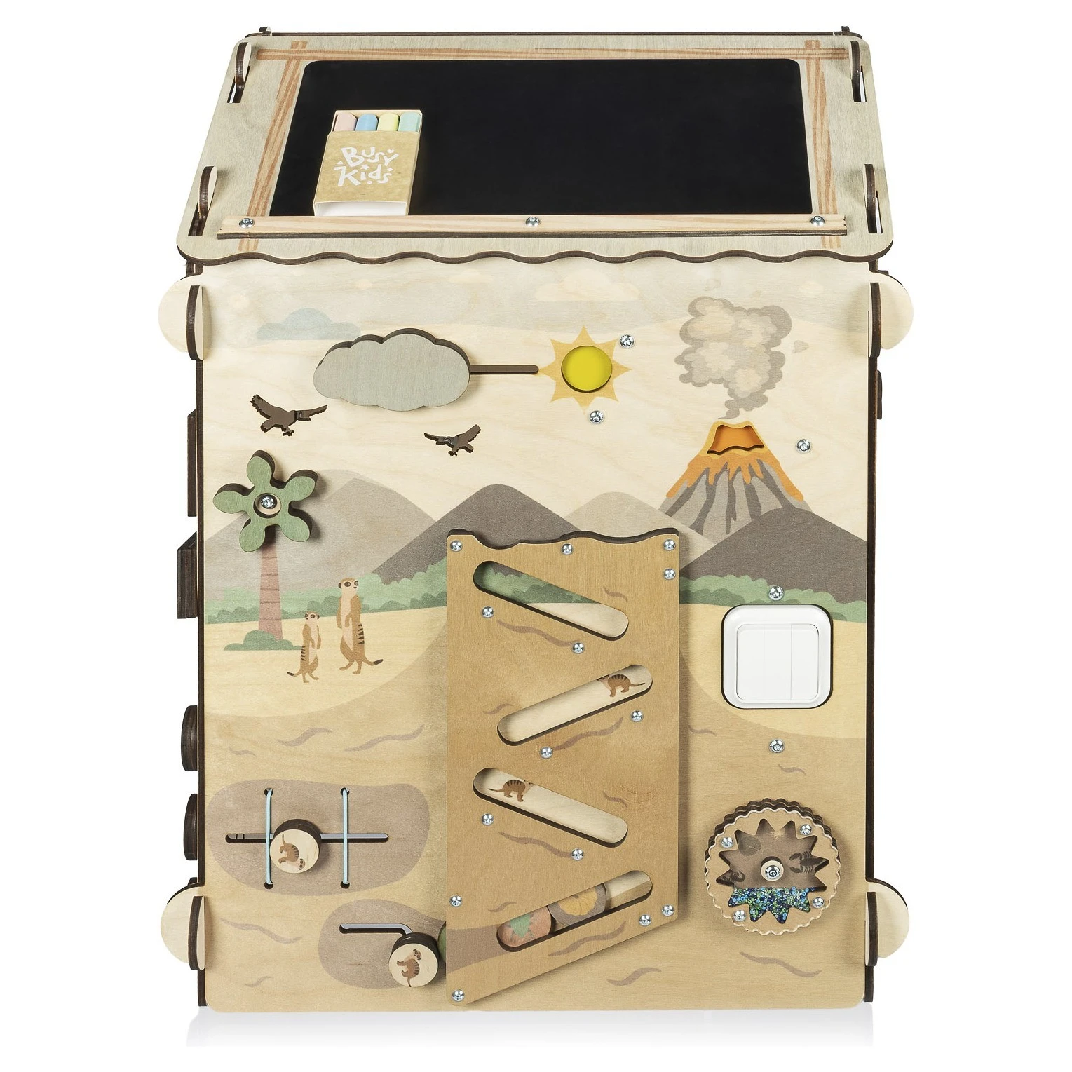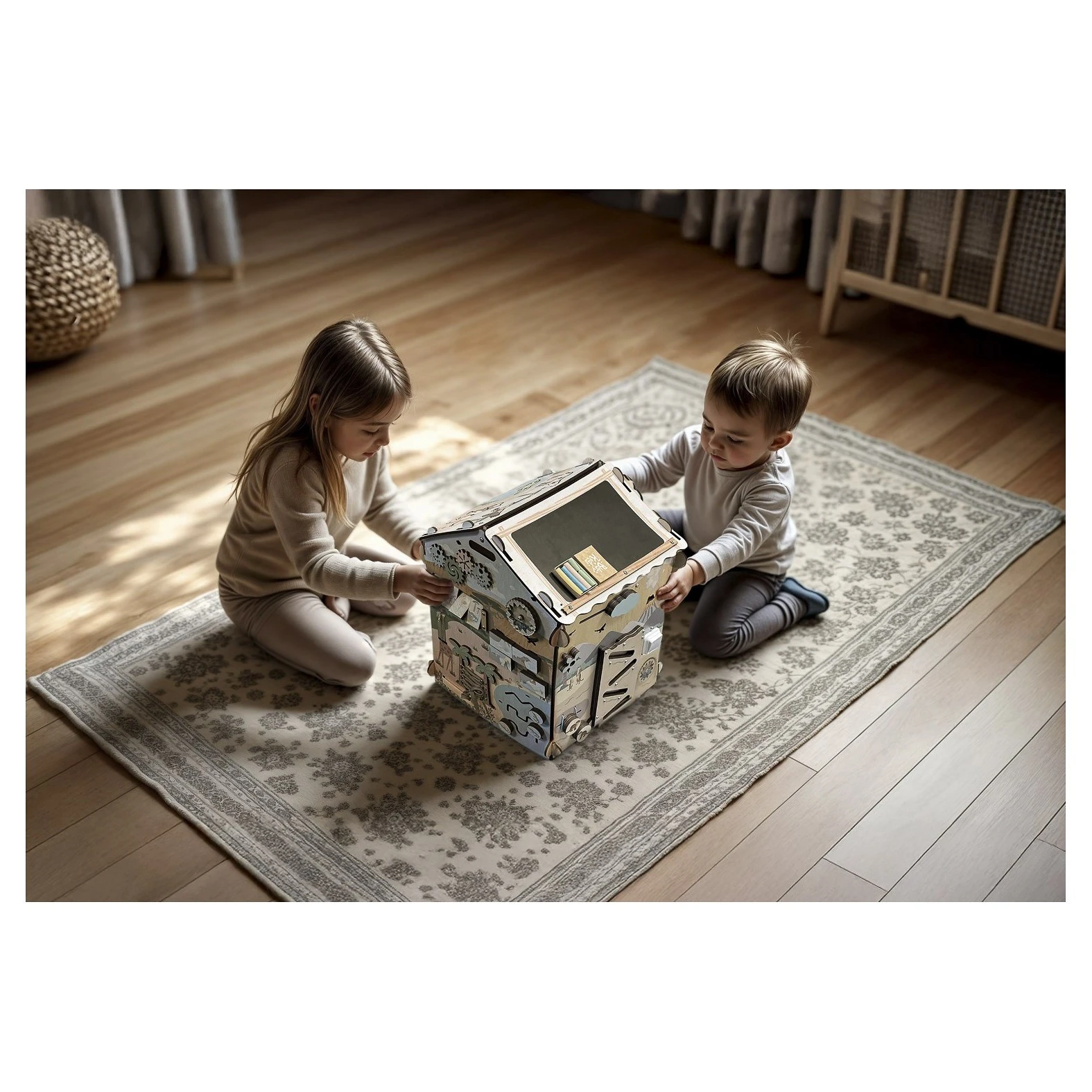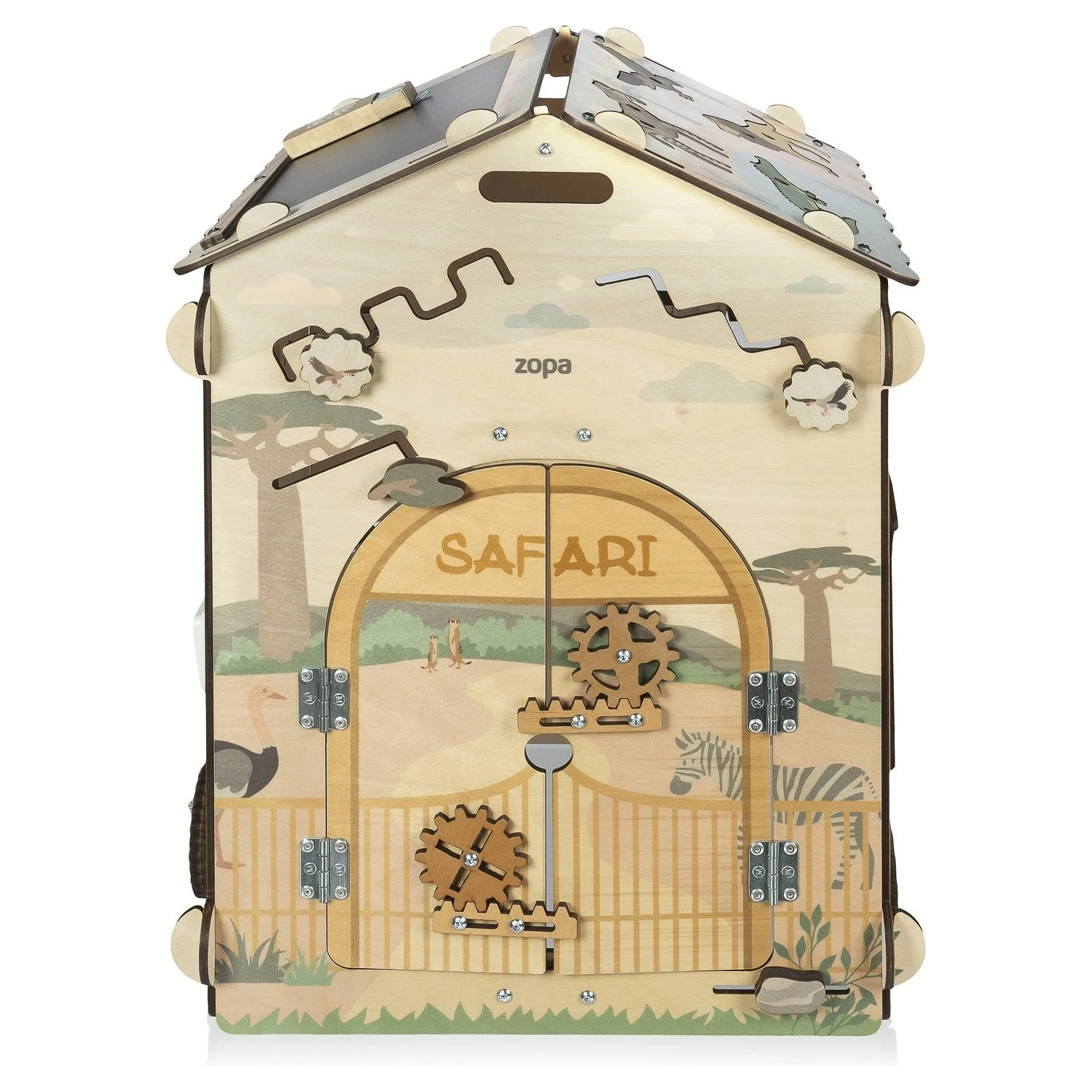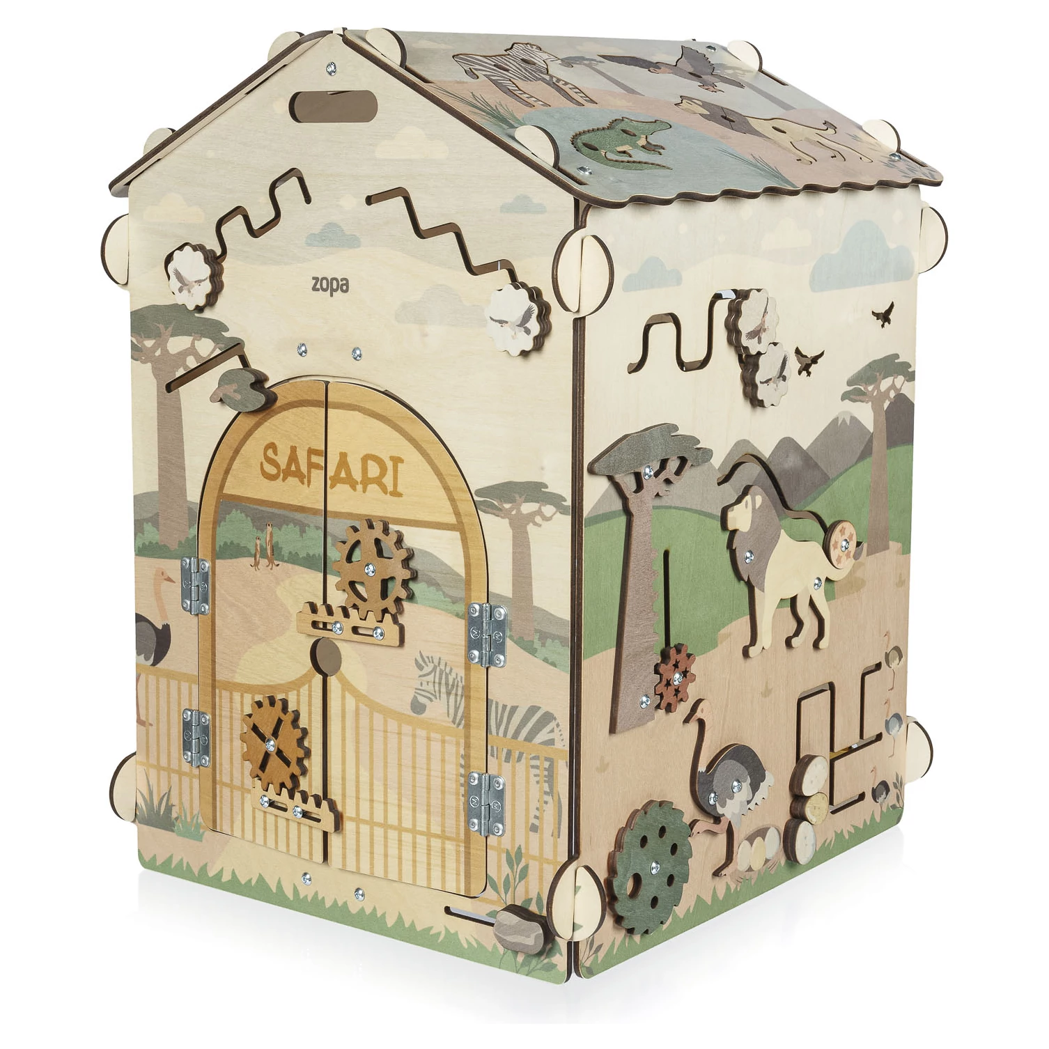 S tímto domečkem si děti užijí spousty zábavy.Každá strana domečku je kreativní: labyrinty, ozubená kolečka, otočné obrázky či kuličkové dráhy rozvíjející koordinaci a smysl pro detail.