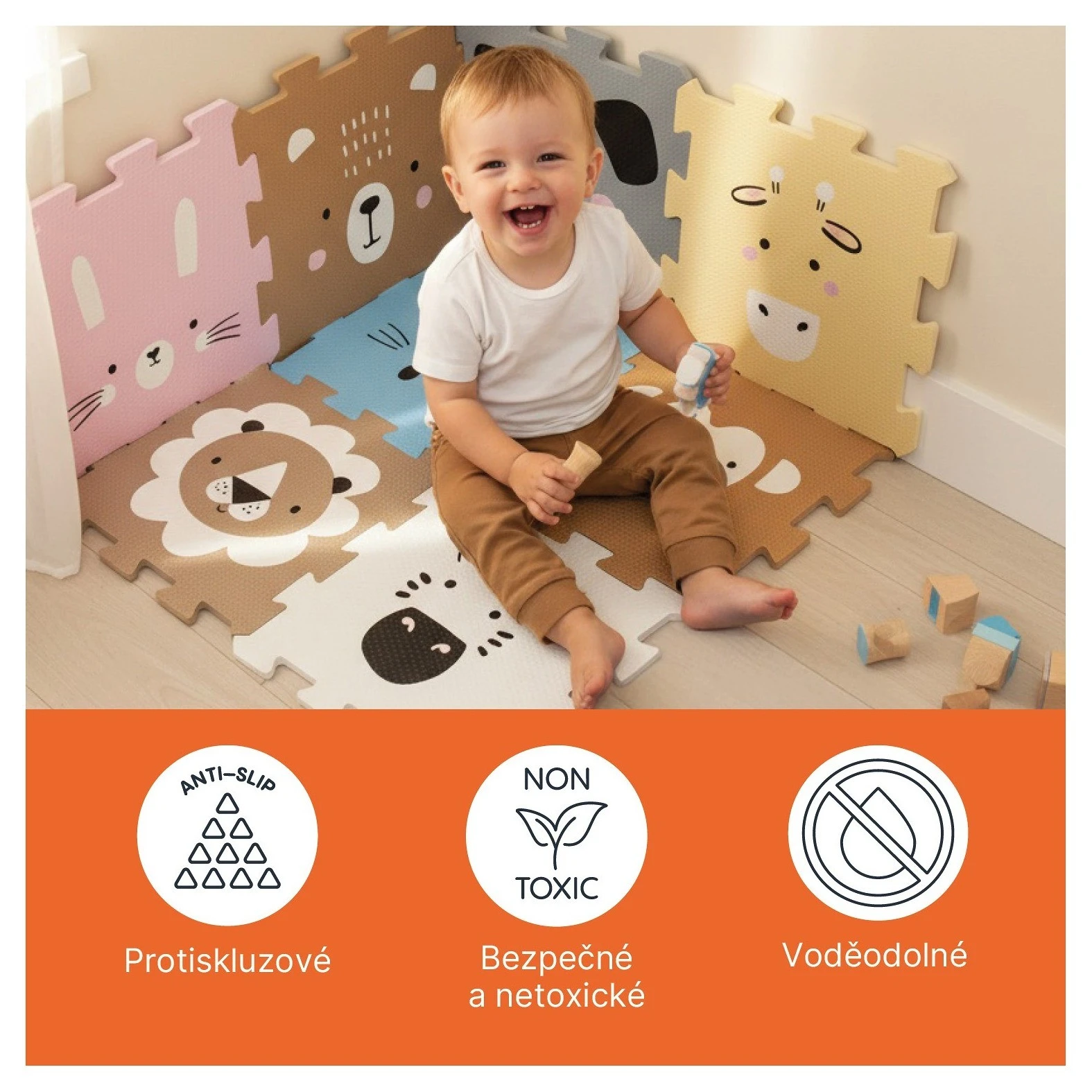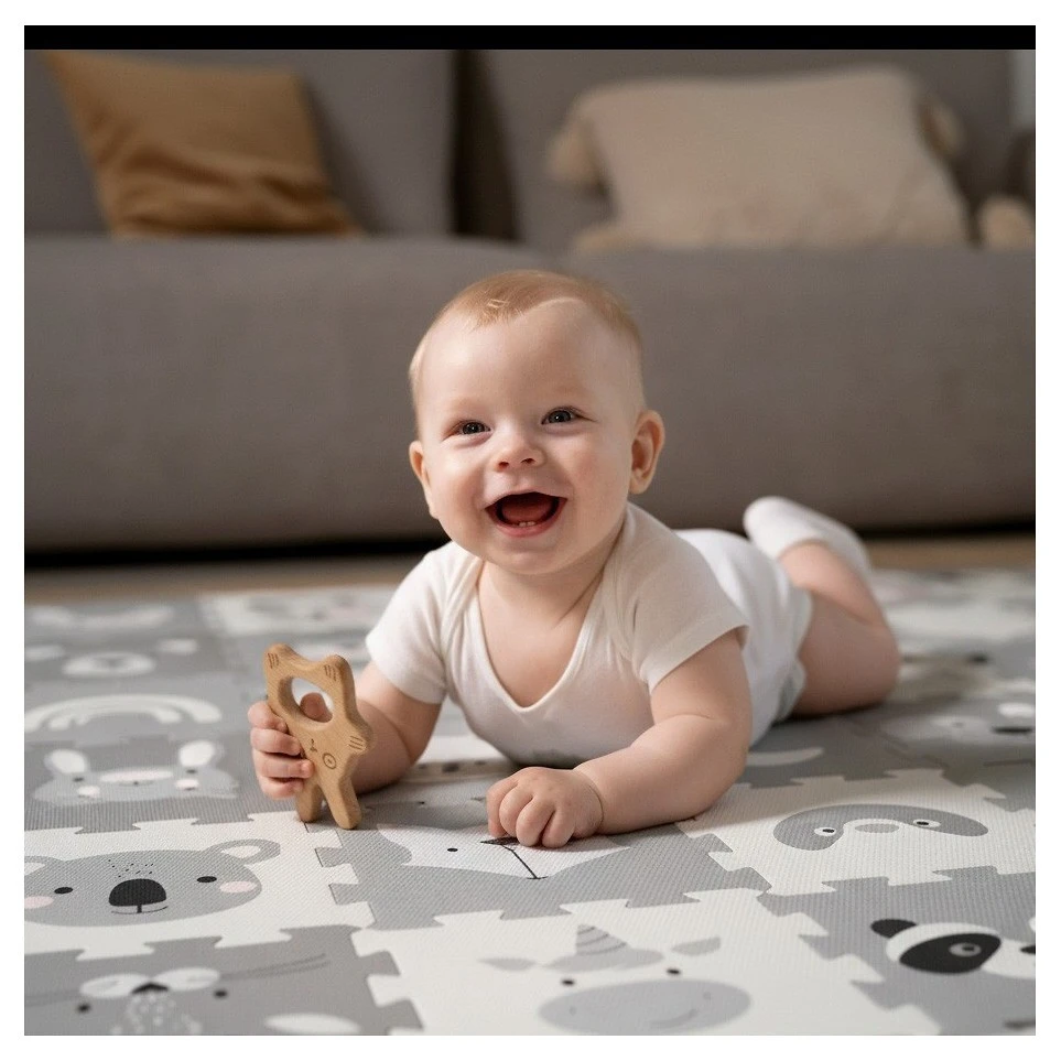 Podložka je vhodná pro děti od narození a je vyrobena z nezávadného a příjemného materiálu, který je bezpečný pro citlivou dětskou pokožku. Její povrch je snadno omyvatelný.