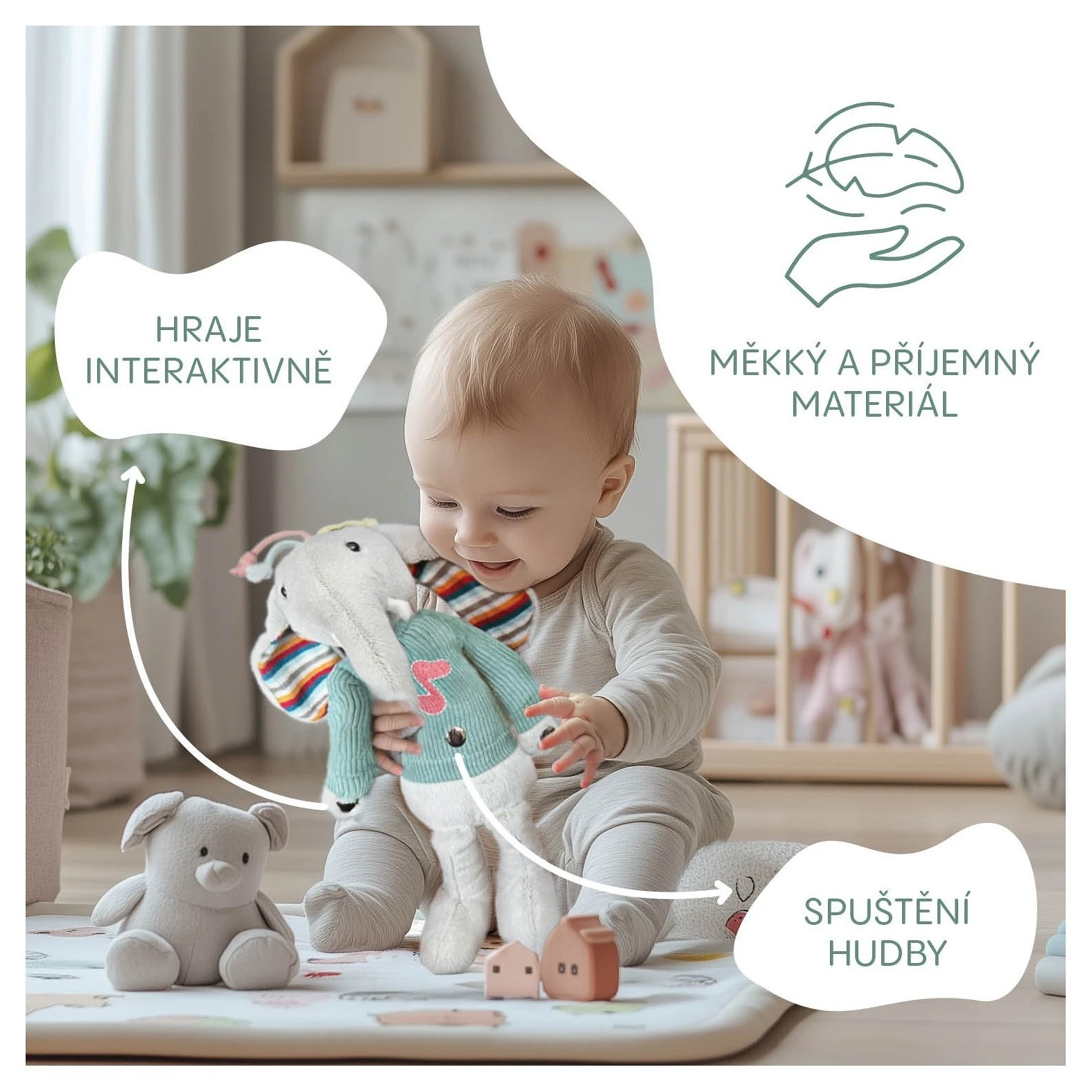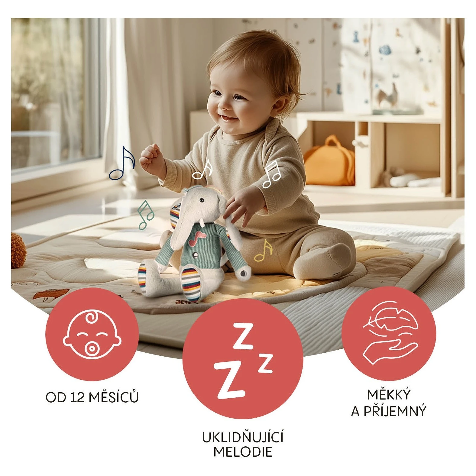 Hračka je vyrobena z měkkého a příjemného plyšového materiálu, ideálního nejen na hraní, ale i na mazlení a usínání. Díky bezpečnému provedení je vhodná pro děti od 12 měsíců a nabízí hodiny zábavy a objevování nových zvuků.
