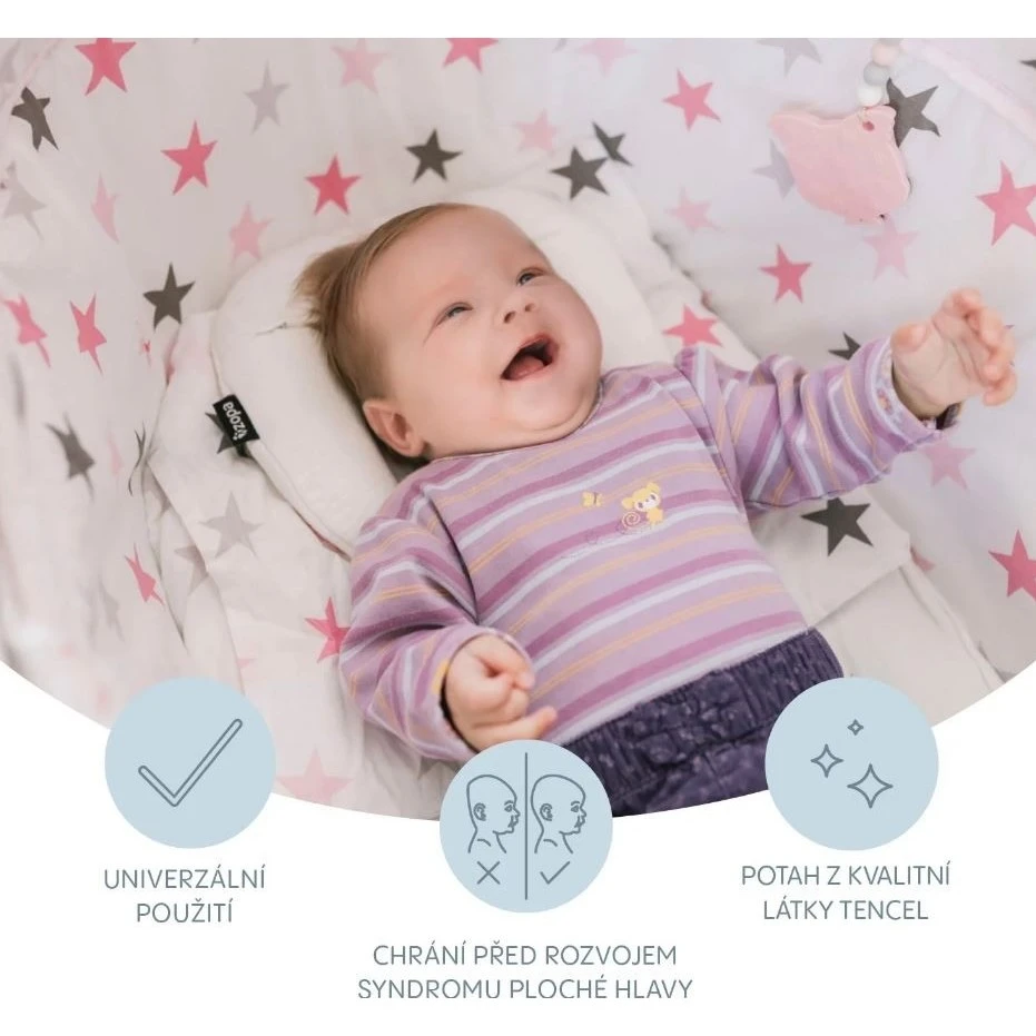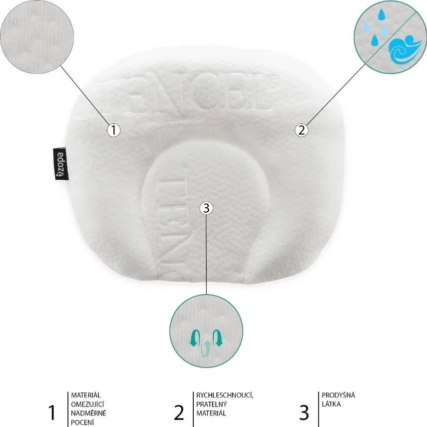 Podpůrný polštářek Zopa je potažený velmi příjemným materiálem Tencel. Díky němu je opravdu prodyšný a dítko se na něm nadměrně nepotí.Podpůrný polštářek pomáhá díky svému tvaru předcházet sploštění hlavičky. Polštářek je možné využít v postýlce, kočárku i autosedačce.