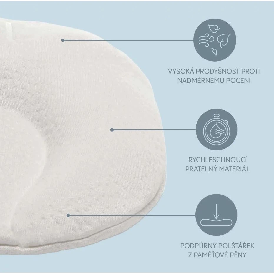 Paměťová pěna se přizpůsobí konkrétnímu dítku a je maximálně pohodlný. Rozměry polštářku jsou 22,5 x 26 cm.