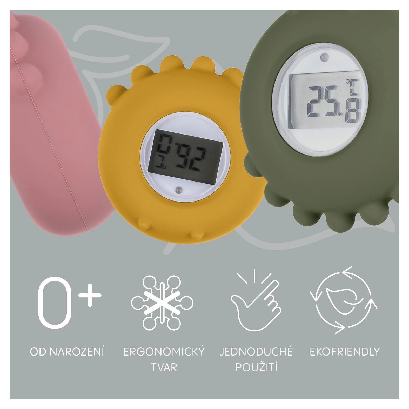 Teploměr je vyroben z kvalitního a odolného silikonu, který je zdravotně nezávadný a neobsahuje BPA, PVC ani ftaláty. Díky tomu je bezpečný pro citlivou dětskou pokožku. Jeho design umožňuje, aby teploměr plaval na hladině vody, což usnadňuje jeho použití během koupele.