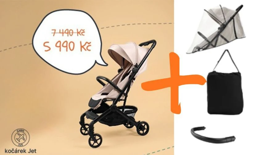 Součástí balení je taška pro přenos kočárku, pláštěnka a hrazdička před dítko. Akce platí pouze do odvolání nebo vyčerpání zásob.