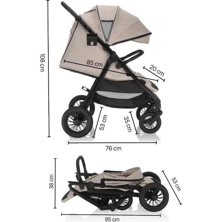 *Jednoduché skládání jednou rukou - kompaktní rozměry po složení (95 × 53 × 38 cm), uzamykatelný mechanismus pro snadný transport